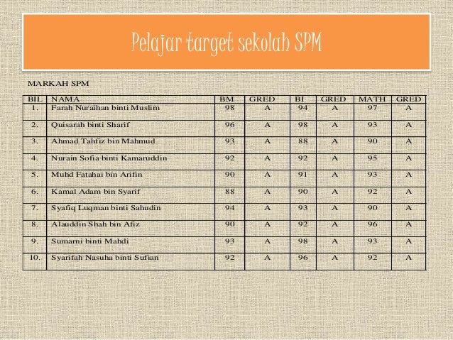 Mulai tahun 2016 terdapat perubahan dalam sistem gred. Markah Gred Spm 2018 - Gred dalam SPM. Baseline data gred markah spm 2019 mengikut subjek.